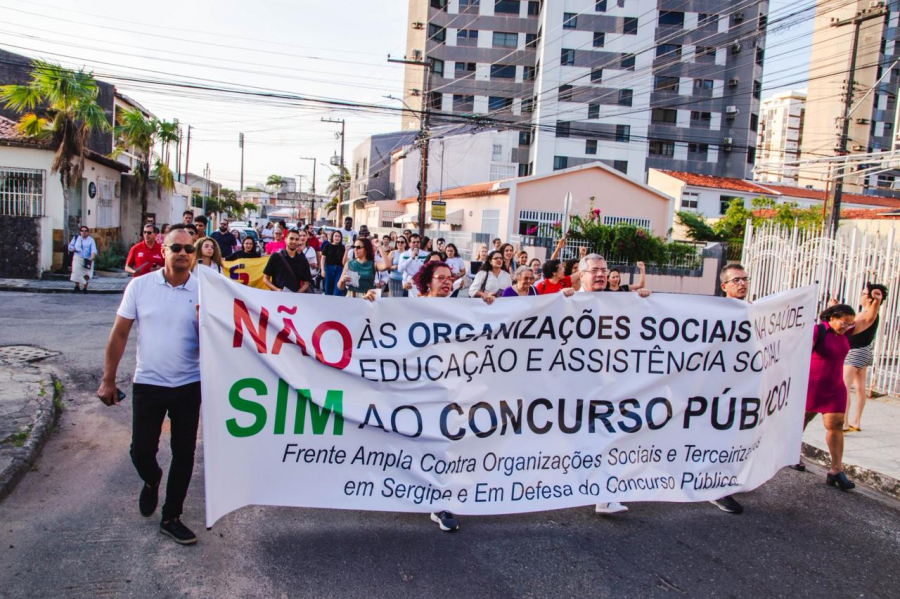 “Não à terceirização, concurso público é a solução!”, terminando assim o ato que entrou para a história como o nascimento da Frente Ampla Contra Organizações Sociais em Sergipe, uma frente de resistência e compromisso com o que é público.