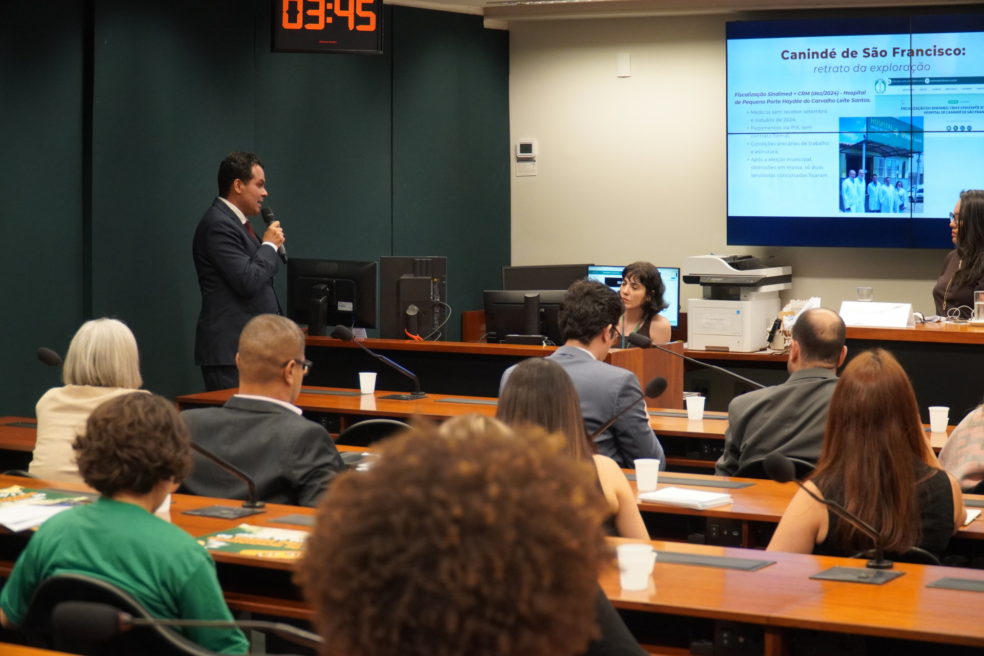 O presidente do Sindicato dos Médicos do Estado de Sergipe (Sindimed), Dr. Helton Monteiro, participou, na tarde dessa segunda-feira, 10, como palestrante da audiência pública realizada pela Comissão de Saúde da Câmara dos Deputados, que debateu o tema “Terceirização e vínculos precários e seus impactos na saúde”. O encontro, realizado no Plenário 7 da Câmara Federal, em Brasília, foi convocado por meio de requerimentos de autoria do deputado Jorge Solla (PT/BA), com o objetivo de promover um amplo debate sobre os efeitos da terceirização no sistema público de saúde brasileiro.